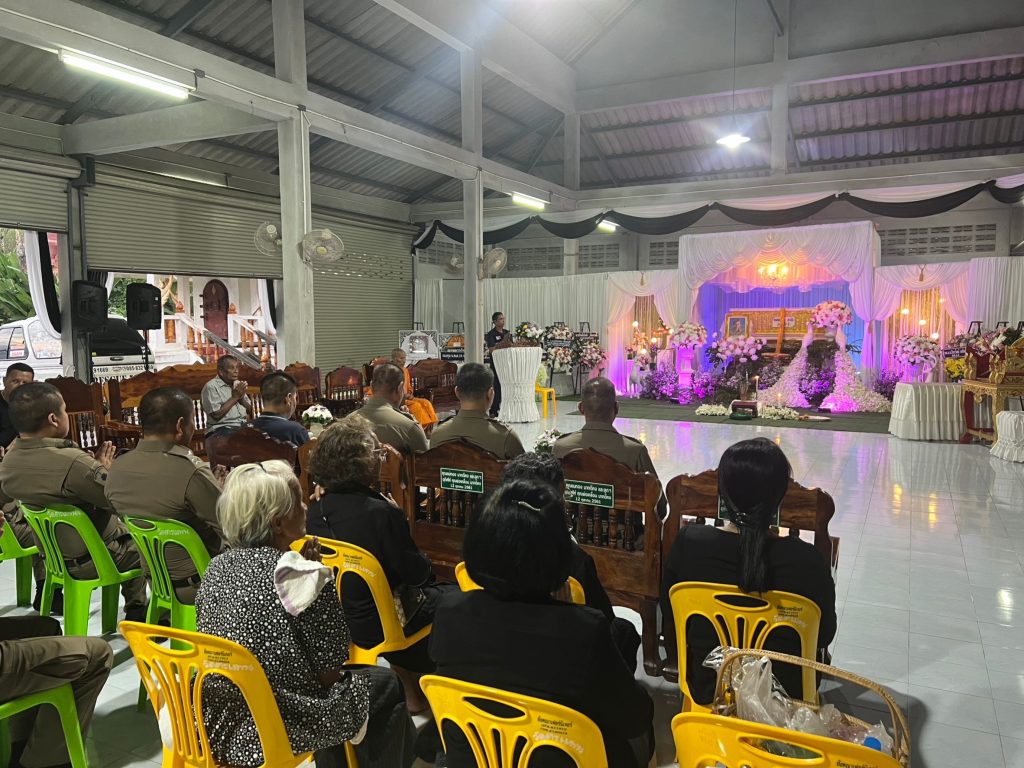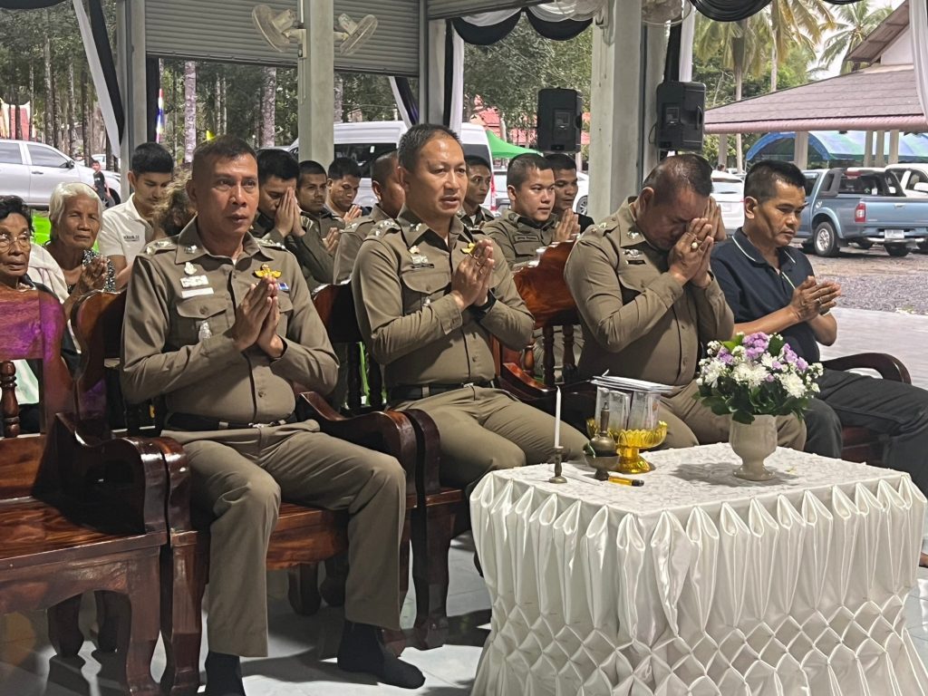 เมื่อวันที่ 28 พฤศจิกายน 2566 เวลา 18.00 น. ว่าที่ พ.ต.อ.ภัควัฒน์ วันสนุก ผกก.สภ.ศรีสาคร พ.ต.ท.วิระ แก้วมณี รอง ผกก.(สอบสวน) สภ.ศรีสาคร, พ.ต.ท.มาโนช วงศ์อินทรัตน์ รอง ผกก.สส.สภ.ศรีสาคร, พ.ต.ท.สุเทพ แก้วสม สว.(สอบสวน) สภ.ศรีสาคร, พ.ต.ท.จรูญ ด้วงไข่ สว.สส.สภ.ศรีสาคร, ร.ต.อ.สริวิชญ์ หนูนวล รอง สวป.ปรก.รอง สว.สส.สภ.ศรีสาคร ร.ต.ต.ดารอหะ มัดเลาะ รอง สว.(ป.)ฯ ปรท. รอง สว ธร.สภ.ศรีสาคร พร้อมข้าราชการตำรวจ สภ.ศรีสาคร ร่วมเป็นเจ้าภาพพิธีสวดพระอภิธรรมศพ คุณพ่อ แคล้ว ด้วงไข่ อายุ 86 ปี บิดาของ พ.ต.ท.จรูญ ด้วงไข่ตั้งศพบำเพ็ญกุศล ณ วัดตะแพน ตำบลตะแพน อำเภอศรีบรรพต จังหวัดพัทลุง