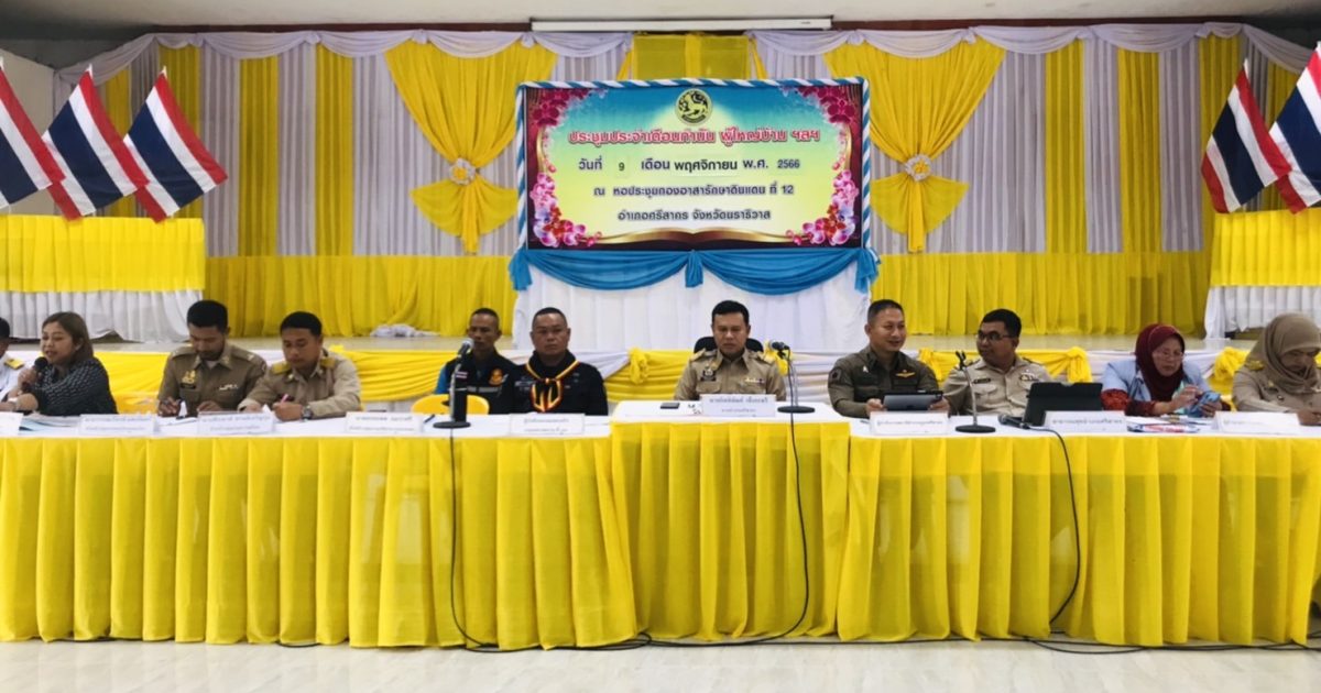 เมื่อวันที่ 9 พ.ย. 2566 เวลา 09.30 น. ว่าที่ พ.ต.อ.ภัควัฒน์ วันสนุก ผกก.สภ.ศรีสาคร, นายกิตตินันท์ เซ็งกะชรี นายอำเภอศรีสาคร, พ.ท.อริย์ธัช นารี รอง ผบ.ฉก.ทพ.49, นายอรรถพล ณะราศรี ปลัดอำเภอหัวหน้ากลุ่มงานบริหารงานปกครองอำเภอศรีสาคร พร้อมหัวหน้าส่วนราชการในพื้นที่ เข้าร่วมประชุมกำนัน ผู้ใหญ่บ้าน ฯลฯ ครั้งที่ 11/2566 ประจำเดือนพฤศจิกายน ณ หอประชุมกองร้อยอาสารักษาดินแดนที่ 12 อำเภอศรีสาคร จังหวัดนราธิวาส