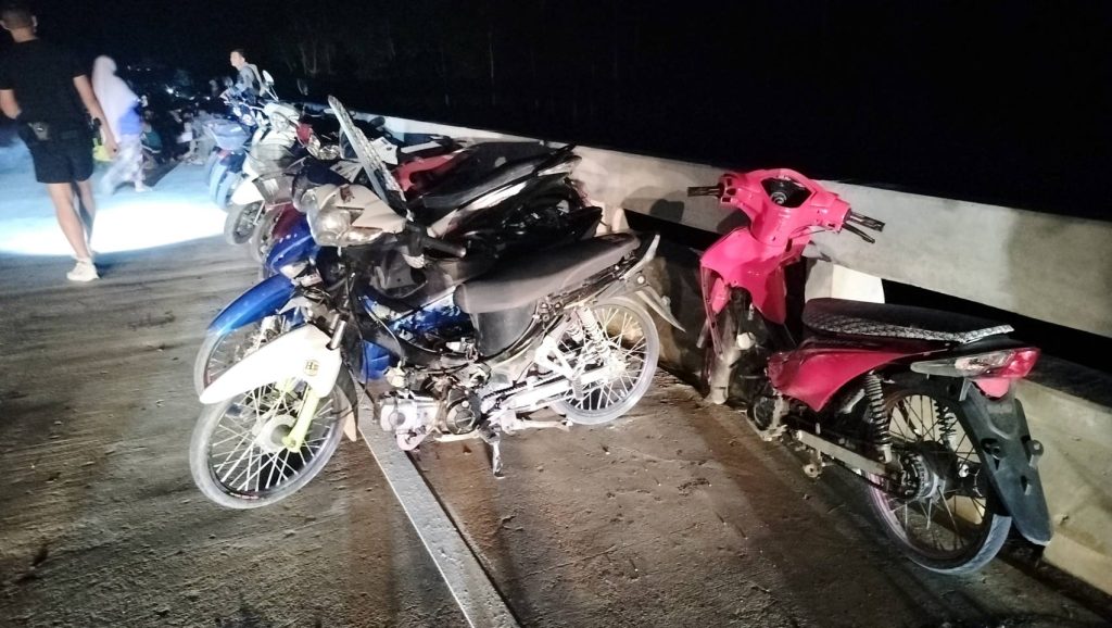 ด้วยเมื่อวันที่ วันนี้ 17 พ.ย.67 เวลาประมาณ 18.39 น.สภ.ศรีสาคร ได้รับแจ้งจากศูนย์วิทยุ 191 ว่ามีการรวมตัวเพื่อแข่งรถในทาง จึงได้ออกไปตรวจสอบ แต่ไม่พบการรวมตัวกันที่บริเวณสะพานดังกล่าว ต่อมาวันที่ 18 พ.ย.67 ภายใต้การสั่งการของ พ.ต.อ ภัควัฒน์ วันสนุก ผกก.สภ.ศรีสาคร ได้ประชุมวางแผนร่วมกันระหว่าง จนท.ตำรวจ สภ.ศรีสาคร ทหารพราน ฉก.ทพ.49 และ จนท.ฝ่ายปกครอง ชรบ.บ้านปาหนัน เพื่อกวดขันจับกุมการรวมตัวแข่งรถที่สะพานดังกล่าว กระทั่งเวลาประมาณ 17.30 น.ได้รับแจ้งว่าพบกลุ่มวัยรุ่นขับขี่รถจักรยานยนต์มารวมตัวกันบริเวณกลางสะพาน ศีรปลากือเลาะ จำนวนมาก มีลักษณะพฤติการณ์เตรียมที่จะแข่งรถกัน จนท.ทั้ง 3 ฝ่าย จึงได้กระจายกำลังปิดล้อมบริเวณสะพาน พบวัยรุ่นชาย อายุตั้งแต่ 11 – 27 ปี จำนวน 41 คน และรถจักรยานยนต์ จำนวน 27 คัน ซึ่งมารวมตัวกันเพื่อมารอดูการแข่งรถที่สะพานดังกล่าว จึงได้นำตัวทั้ง 41 คน และรถจักยานยนต์ ทั้ง 27 คัน ไปที่ สภ.ศรีสาคร โดยเบื้องต้นจะได้ประวัติบุคคลกลุ่มเสี่ยงต่อการแข่งรถทั้ง 41 คน และเรียกผู้ปกครองของวันรุ่นทั้ง 41 คน มาพบ จนท.ตำรวจดำเนินการตามกฎหมายที่เกี่ยวข้อง และตรวจสอบรถทั้ง 27 คัน หากพบว่ารถคันใดที่ไม่ถูกต้องจะดำเนินการในส่วนที่เกี่ยวข้องต่อไป