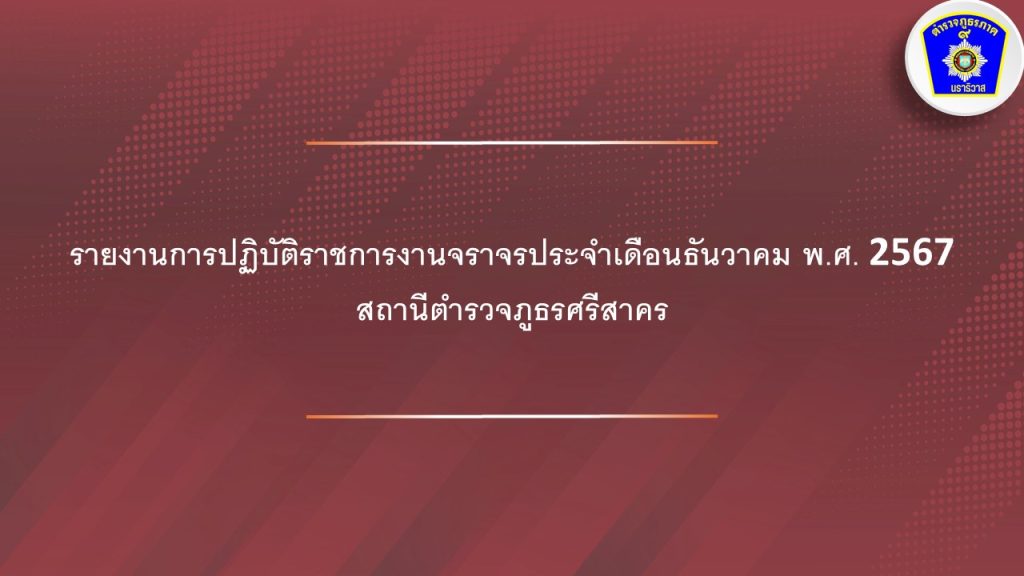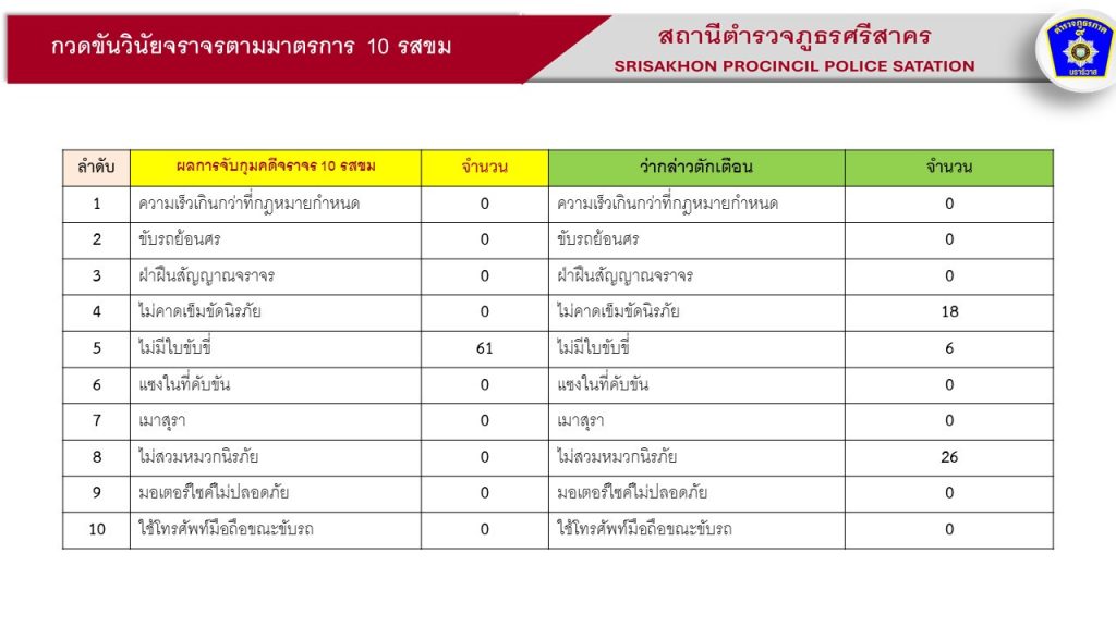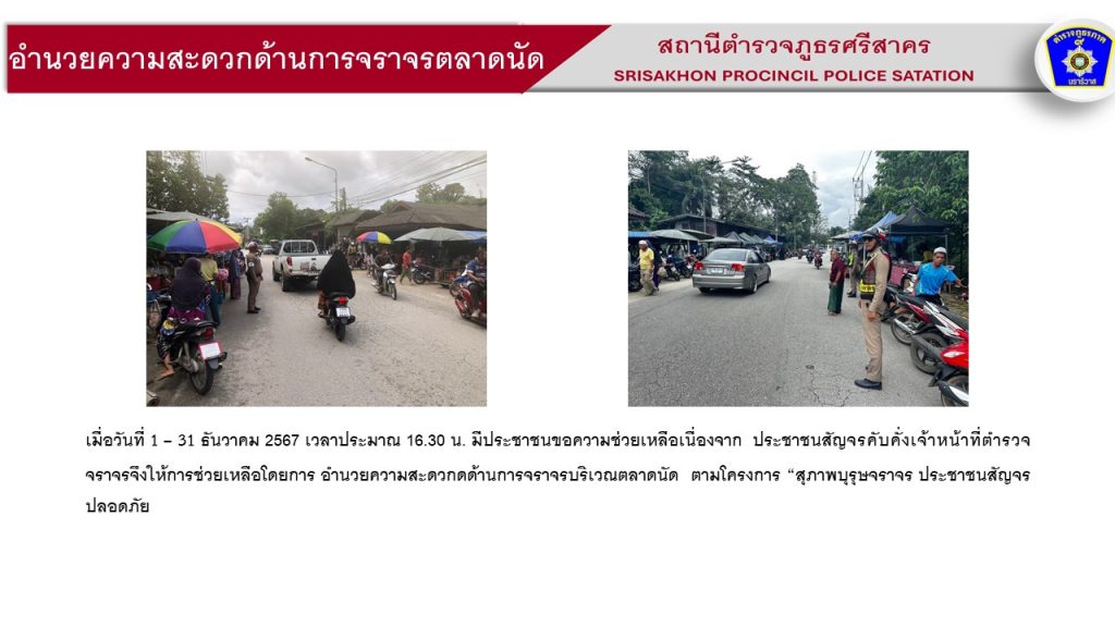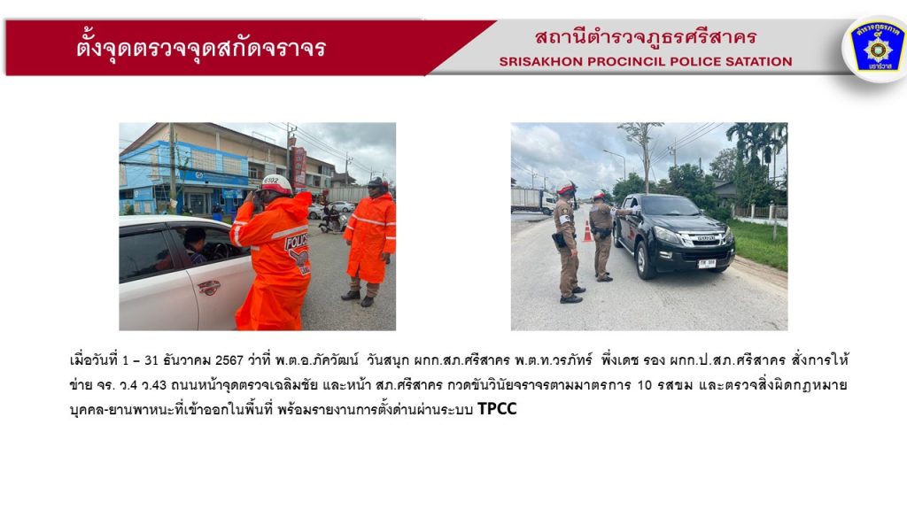 ผลการปฏิบัติ งานจราจร ประจำเดือน ธันวาคม 2567 2 มกราคม 2025 โดย srisakhon_ssk / ข่าวประชาสัมพันธ์,งานจราจร