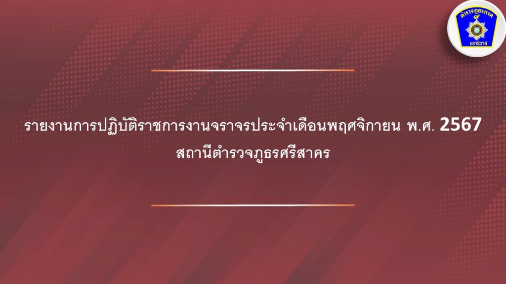 ผลการปฏิบัติ งานจราจร ประจำเดือน พฤศจิกายน 2567 2 ธันวาคม 2024 โดย srisakhon_ssk / ข่าวประชาสัมพันธ์,งานจราจร