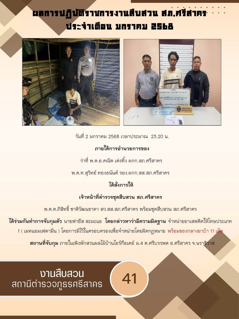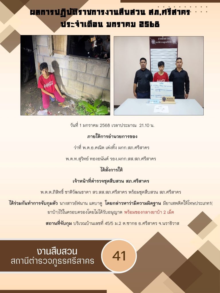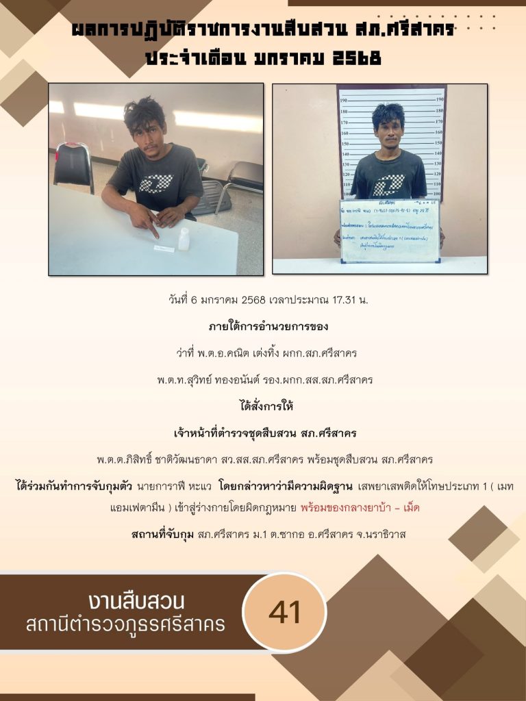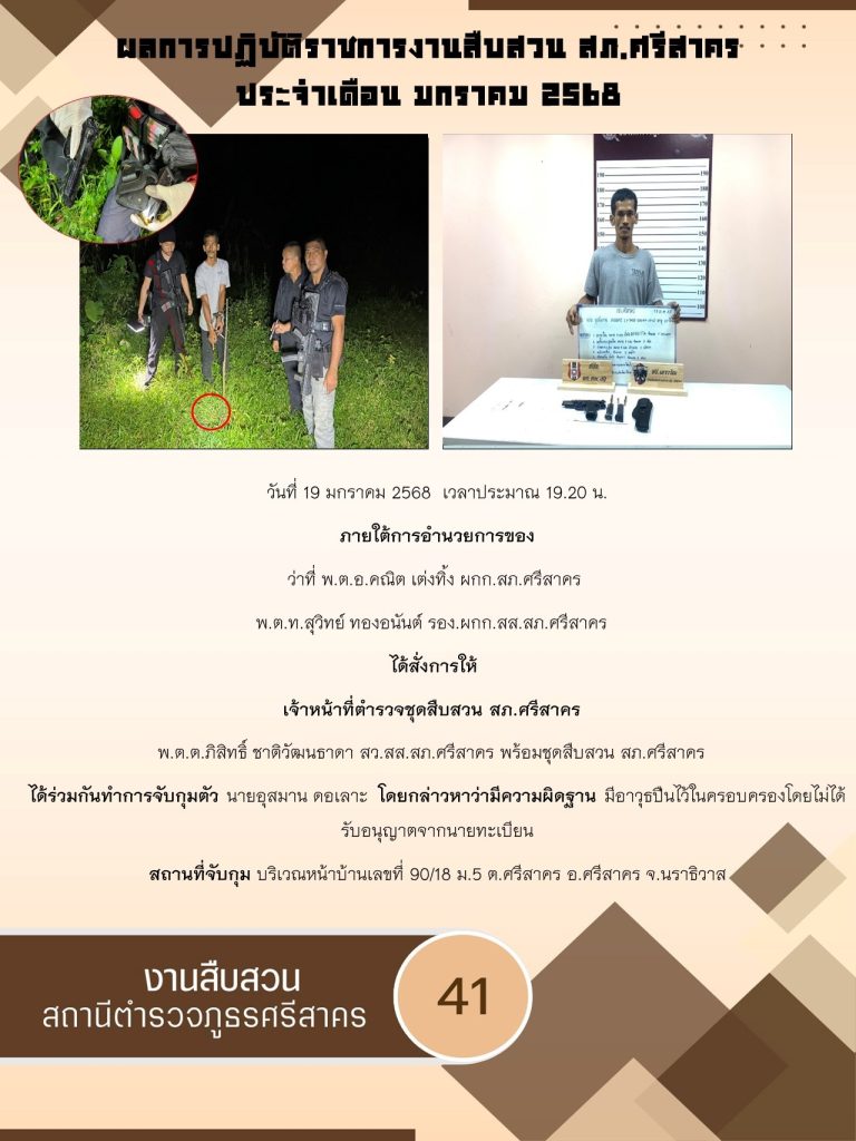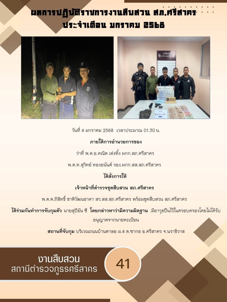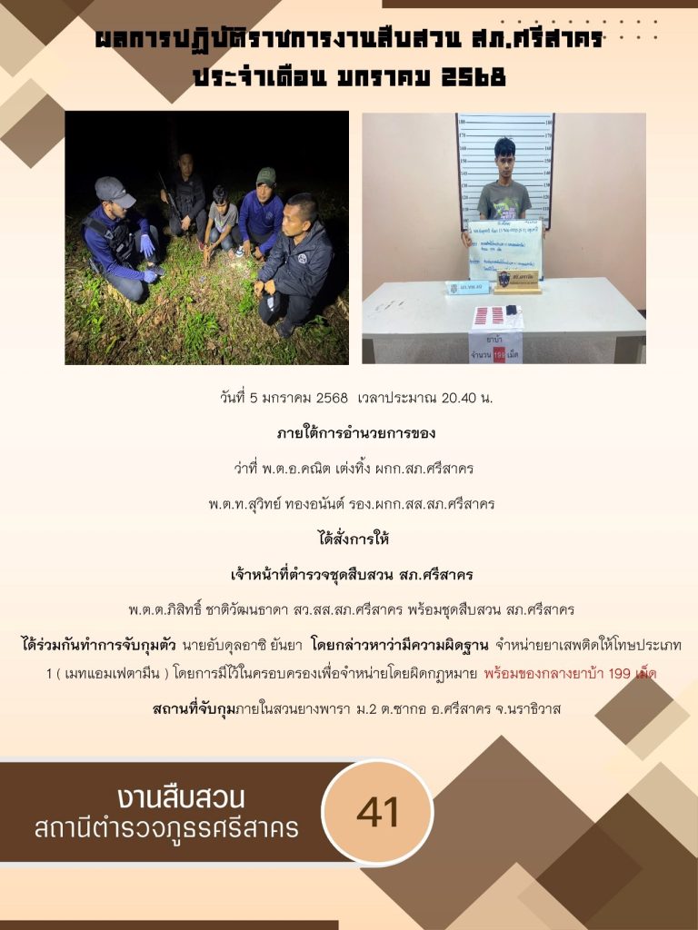 ผลการปฏิบัติ งานสืบสวน ประจำเดือนมกราคม 2568 5 กุมภาพันธ์ 2025 โดย srisakhon_ssk / ข่าวประชาสัมพันธ์,งานสืบสวน