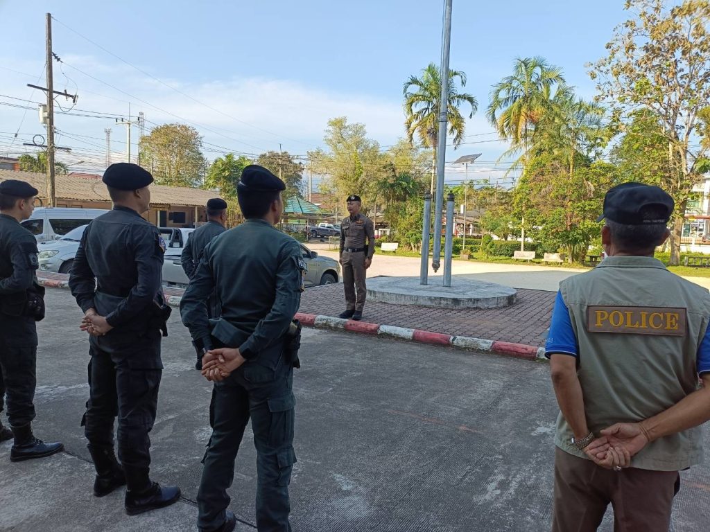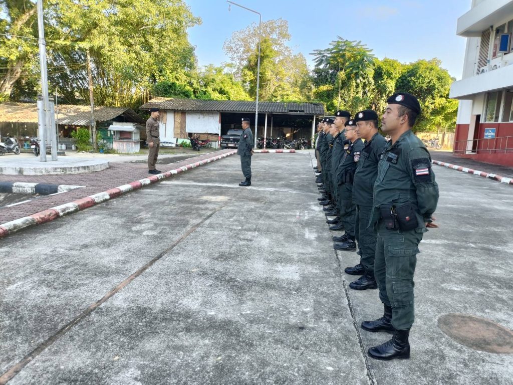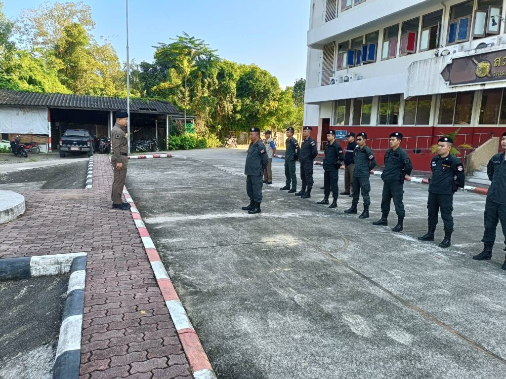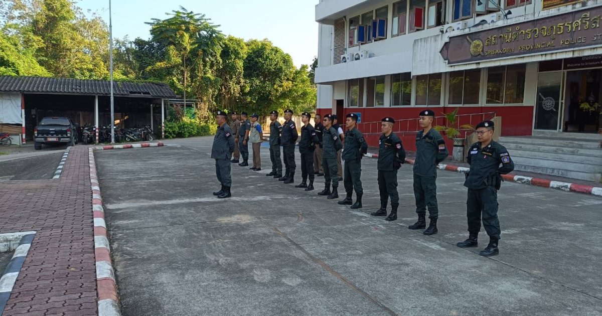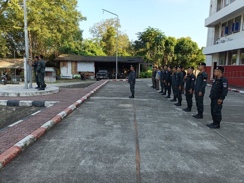 วันที่ 8 กุมภาพันธ์ 67 เวลา 08:30 น. ว่าที่ พ.ต.อ.ภัควัฒน์ วันสนุก ผกก.สภ.ศรีสาคร พ.ต.ท.สุเทพ แก้วสม สว.สอบสวน สภ.ศรีสาคร ร.ต.ท.บดินทร์ ยีมะลี รอง สว.สส.สภ.ศรีสาคร ร.ต.ต.ดารอหะ มัดเลาะ รอง สว.(ป.) สภ.ศรีสาคร พร้อมข้าราชการตำรวจ สภ.ศรีสาคร ร่วมเคารพธงชาติ ชี้แจงข้อสั่งการของผู้บังคับบัญชาพร้อมกำชับการปฏิบัติหน้าที่ ไม่ประมาทและการเดินทางจะต้องไปเป็นคู่บัดดี้