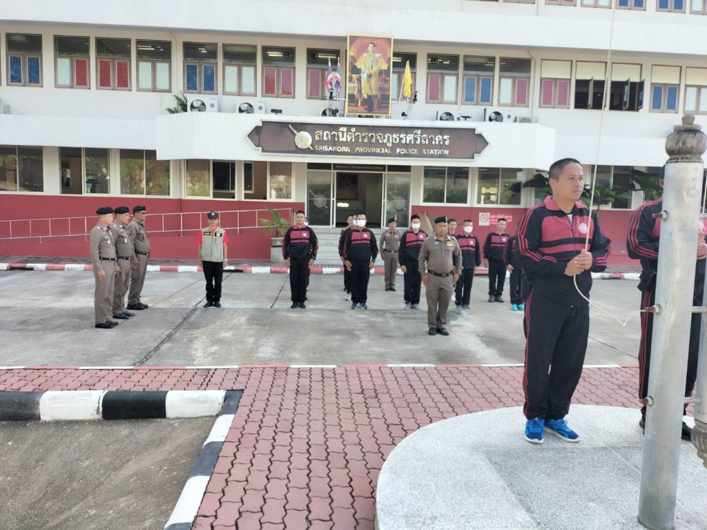 เมื่อวันที่ 15 พฤศจิกายน 66 เวลา 08:30 น. ว่าที่ พ.ต.อ.ภัควัฒน์ วันสนุก ผกก.สภ.ศรีสาคร, พ.ต.ท.วรภัทร พึ่งเดช รอง ผกก.ป.สภ.ศรีสาคร, พ.ต.ท.สุเทพ แก้วสม สว. สอบสวน สภ.ศรีสาคร, พ.ต.ต.ผิน ณ มณี สวป.สภ.ศรีสาคร, ร.ต.ท.บดินทร์ ยีมะลี รอง สว.สส.สภ.ศรีสาคร, ร.ต.ต.ดารอหะ มัดเลาะ รอง สว.(ป.)ฯ ปรก.รอง สว.ธร.สภ.ศรีสาคร พร้อมข้าราชการตำรวจฝ่ายอำนวยการ สภ.ศรีสาคร ร่วมเคารพธงชาติ พร้อมกล่าวอุดมคติตำรวจ 9 ข้อ, ชี้แจงข้อสั่งการของผู้บังคับบัญชาพร้อมกำชับการปฏิบัติหน้าที่
