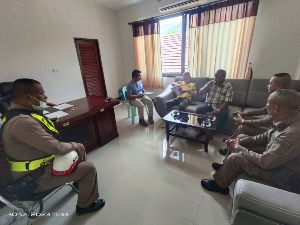 เมื่อวันที่ 30 พฤษภาคม 2566 เวลา 11.20 น. ว่าที่ พ.ต.อ.ภัควัฒน์ วันสนุก ผกก.สภ.ศรีสาคร มอบหมายให้ พ.ต.ท.วรภัทร์ พึ่งเดช รอง ผกก.ป.สภ.ศรีสาคร, พ.ต.ต.ผิน ณ มณี สวป.สภ.ศรีสสาคร พร้อมเจ้าหน้าที่ตำรวจจราจร สภ.ศรีสาคร เข้าพบกับ นายอับดุลรอยะ อาบูซาแล รองนายกเทศมนตรีตำบลศรีสาคร และ นายอาลาวี ยูโซ๊ะ ปลัดเทศบาลตำบลศรีสาคร ณ สำนักงานเทศบาลตำบลศรีสาคร รายงานข้อมูลของป้ายจราจรที่ชำรุดเห็นควรติดตั้งใหม่ในบริเวณเขตเทศบาลฯ, พื้นที่รับผิดชอบ และประชุมหารือ เรื่องการป้องกันอุบัติเหตุบนท้องถนนในพื้นที่จุดเสี่ยงที่อาจเกิดอุบัติเหตุ เพื่อความปลอดภัยในการใช้รถใช้ถนนของประชาชนพื้นที่ อ.ศรีสาคร /ร.ต.ต.ดารอหะ มัดเลาะ ปรก.รอง สว.ธร.สภ.ศรีสาคร รายงาน