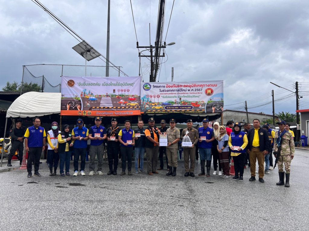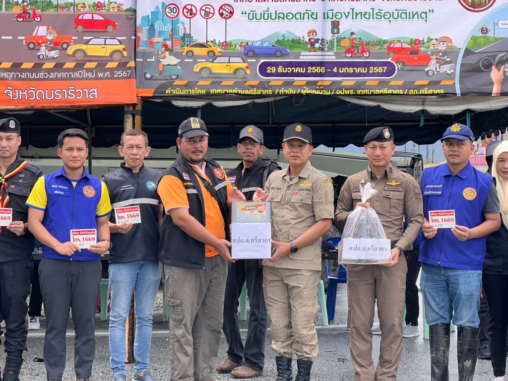 ระหว่างวันที่ 29 ธันวาคม พ.ศ.2566 ถึง วันที่ 4 มกราคม พ.ศ.2567 อำนวยความสะดวกแก่ประชาชนที่ใช้เส้นทางสัญจร, กำชับการปฏิบัติของเจ้าหน้าที่เพื่อป้องกันและลดอุบัติเหตุ, มอบสิ่งของให้กับเจ้าหน้าที่เพื่อเป็นขวัญและกำลังใจในการปฏิบัติหน้าที่ ณ ศูนย์ปฏิบัติการร่วมป้องกันและลดอุบัติเหตุทางถนนในช่วงเทศกาลปีใหม่จุดตรวจหน้าโรงพยาบาลอำภอศรีสาคร และ จุดสี่แยกเฉลิมชัย อ.ศรีสาคร จว.นราธิวาส