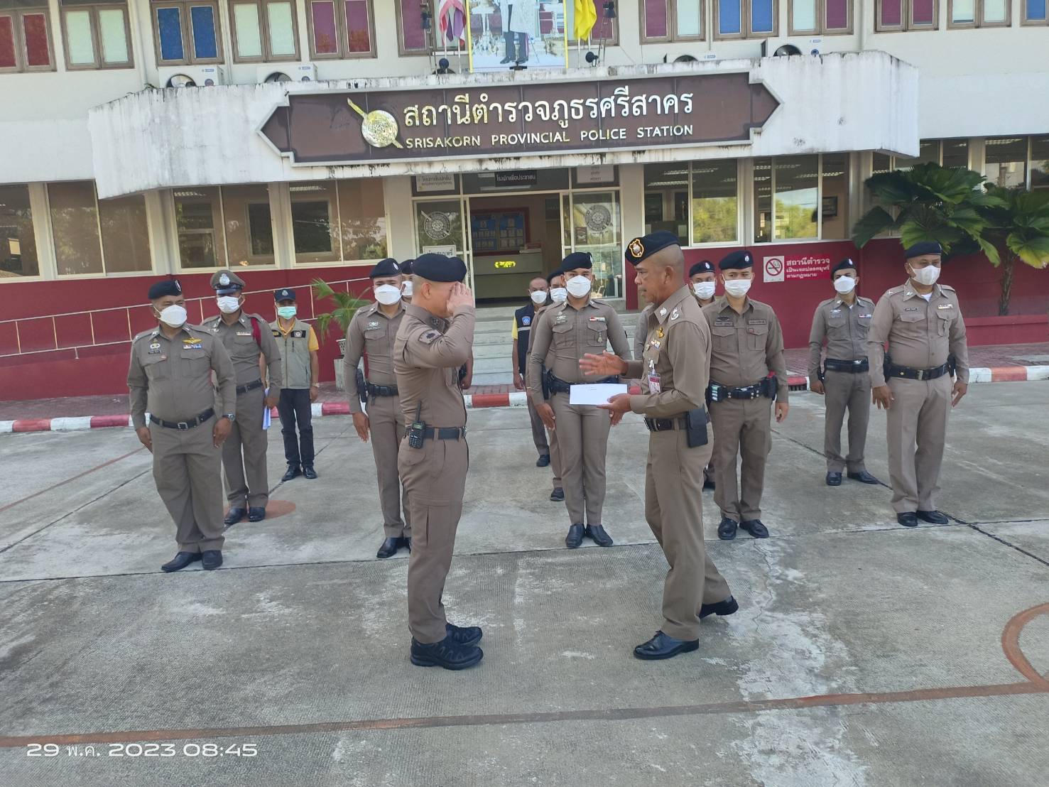 เมื่อวันที่ 29 พ.ค. 2566 เวลา 08.30 น. ว่าที่ พ.ต.อ.ภัควัฒน์ วันสนุก ผกก.สภ.ศรีสาคร, พ.ต.ท.วรภัทร์ พ
