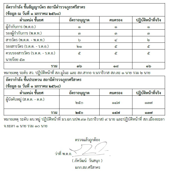 O2 ข้อมูลผู้บริหาร อัตรากำลัง และพื้นที่รับผิดชอบ 2568