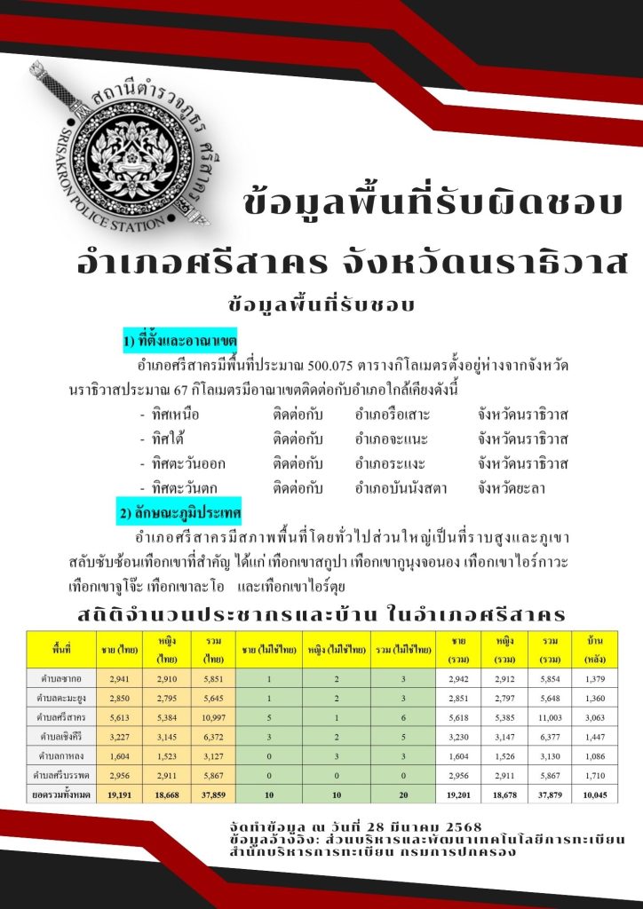 อำเภอศรีสาคร ประกอบด้วย 6 ตำบล 35 หมู่บ้าน 1 เทศบาลตำบล ได้แก่1. ตำบลซากอ มี 6 หมู่